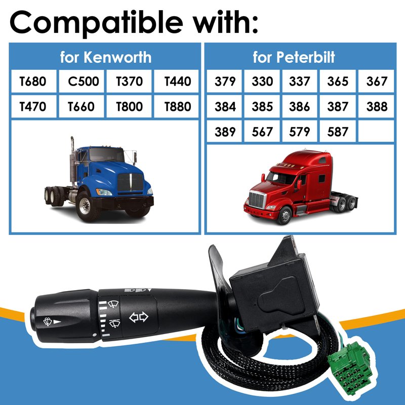 Compatible Vehicles: < br > Kenworth T680, C500, T370, T440, T470, T660, T800, T880< br > Peterbilt 379, 330, 337, 365, 367, 384, 385, 386, 387, 388, 389, 567, 579, 587< br > Replaces Number: < br > P27-1067< br > P271067< br > P27-6221< br > TRW 480791< br > 20548AA< br > A0613-002-00< br > Includes: < br > 1* Turn Signal Switch with 8-Wire < br >