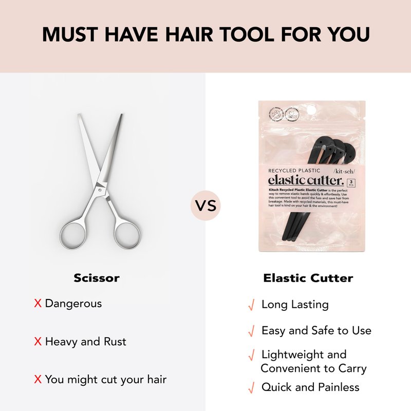 - EFFORTLESS HAIR TIE REMOVAL: With Kitsch's Hair Rubber Band Cutter Tool, you can gently remove hair bands and hair elastics, leaving your hair and scalp feeling comfortable and unburdened. No more tugging, pulling, or discomfort with our hair band cutter—just smooth and easy braids and band removal.