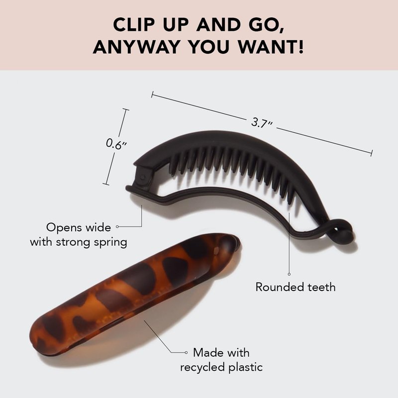 Kitsch Hair Clips for Women - Recycled Plastic Hair Accessories for Low Ponytail | Matte Ponytail Clips | Creaseless Hair Barrettes for Women - 2 Pcs Black and Tortoise