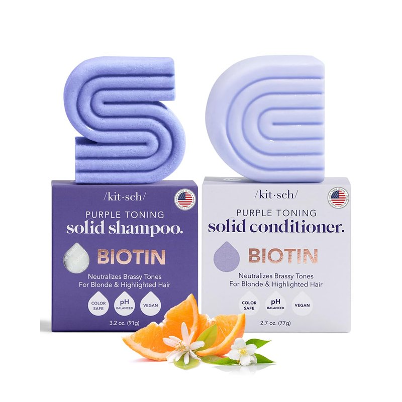 Kitsch Purple Shampoo & Conditioner Bar for Color Treated & Grey and white Hair, Made in Us, Toning Bar Shampoo & Conditioner for Blonde
