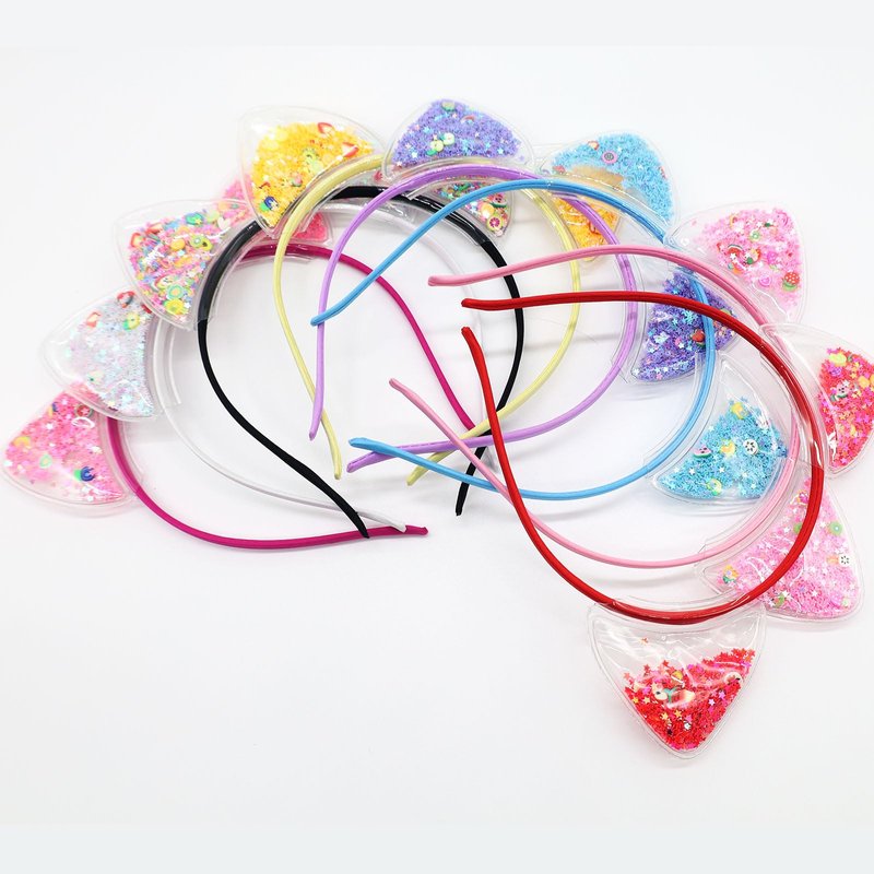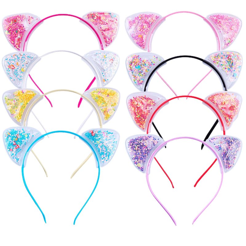 8 Cat Ear Headbands, Transparent Shining Sequin Headwear Hair Band Party Decoration Cosplay for Girls Women