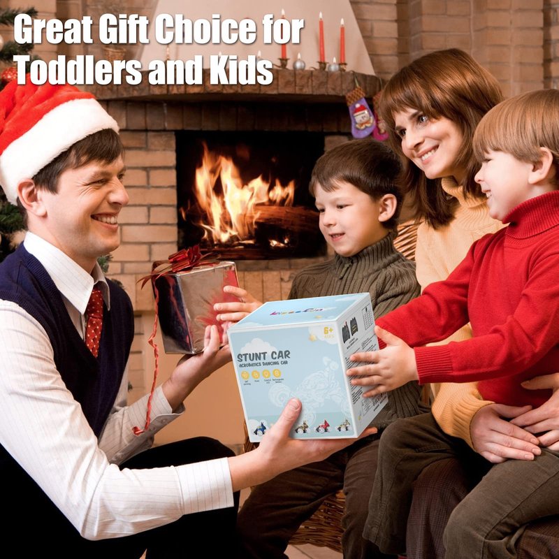 - The RC Cars that Make Stunts: This remote control car can race and perform double-sided driving, 360° spins and flip with its LED dazzling headlights; Moreover, its back wheel can stretch for dancing; Great kids toys to let the little boys and girls enjoy a wonderful car show and fun
