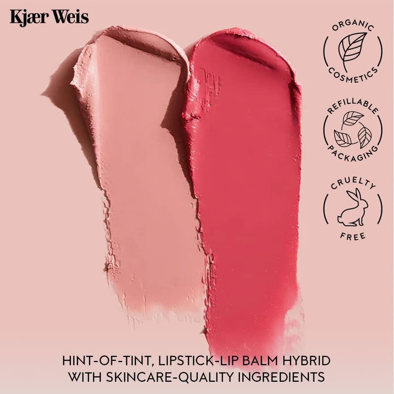 Kjaer Weis Lip Tint. Hydrating Berry Pink Lip Color Makeup with Soft Satin Finish. Nourishing Ingredients for Long Lasting Lip Stain. Cruelty Free Clean Makeup (Passionate Iconic)