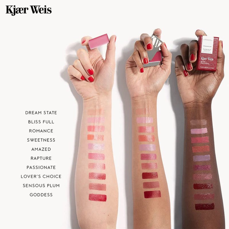 Kjaer Weis is a luxury makeup brand that offers a range of clean, certified-organic, and vegan beauty products, including skincare and cosmetics. The brand is committed to providing high-performing makeup that doesn’t compromise when it comes to conscience – with refillable, sustainable packaging and cosmetics that are always cruelty free. Their collection includes a wide range of makeup products, including blush makeup, concealer, foundation, mascara, eyeshadow, eye makeup, lip balm, long-lasting lipstick, lip liner, eye cream, blush, highlighter makeup, and face makeup. All of their products are carefully crafted to enhance the natural beauty of the wearer, providing a flawless and radiant finish. Kjaer Weis cosmetics give the perfect ‘clean girl aesthetic’, emphasizing natural, simple beauty. Their clean makeup is made with carefully selected skincare quality ingredients that are organic, natural, and free from harmful chemicals and toxins. The brand's commitment to clean beauty is reflected in their packaging, which is refillable, reusable, and recyclable. Overall, Kjaer Weis is a rare beauty brand that offers both high-performance makeup and skin care products that are both ethical and sustainable. Their commitment to cruelty-free makeup and skin care products, as well as their dedication to using organic and natural ingredients, sets them apart in the world of luxury beauty.