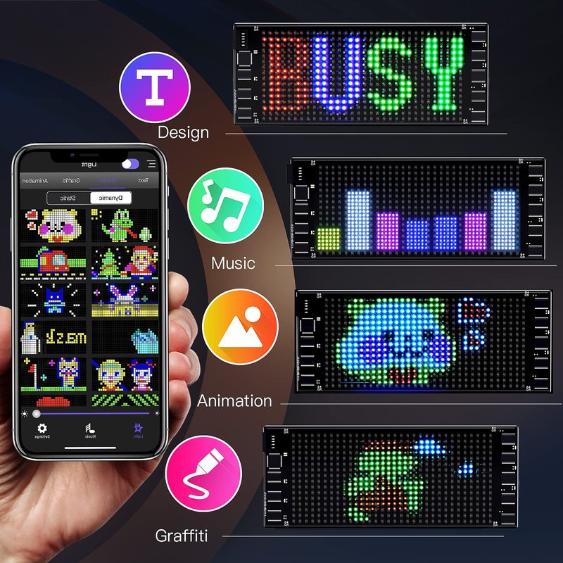 - 【Colorful Lighting】 The car LED sign adopts 2121 RGB lamp beads. This high-quality LED matrix panel can not only emit high-intensity light, but also with low power consumption, the full-color effect will be brighter and more attractive. Not only increases the lifespan of the LED matrix panel , but also achieves IP66 waterproofing.