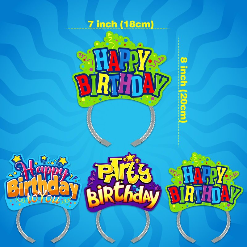 - HAPPY BIRTHDAY HEADBANDS - Still looking for a grand and unforgettable set up for the birthday party? This colorful set of beautiful and fashionable party headbands will add a touch of fun and flair to your child's birthday celebration! The charming, colorful design will catch everyone's eyes, it is a big surprise on the party. They are a wonderful choice as party favor and everyone will love them.