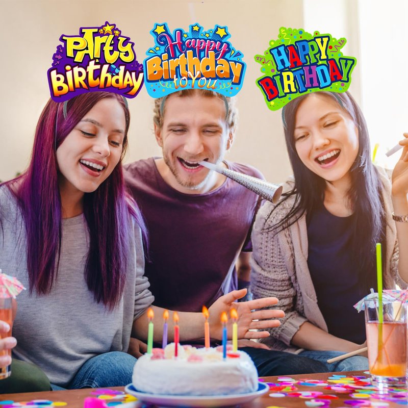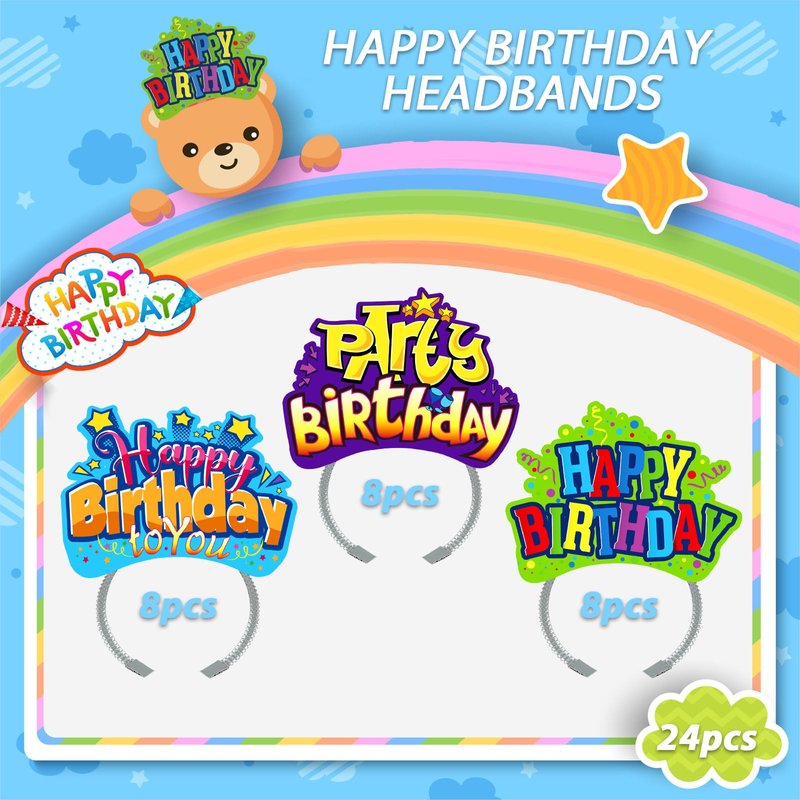 - WHAT YOU WILL GET - You will get a total of 24 Happy Birthday Headbands, including 3 different styles, 8 of each style. Please understand that there are a few cases that may cause deformation during transportation. If you encounter this situation, you can tidy up the band by hand. If you cannot accept it, please contact us and we will solve the problem as soon as possible. Thank you for your understanding!