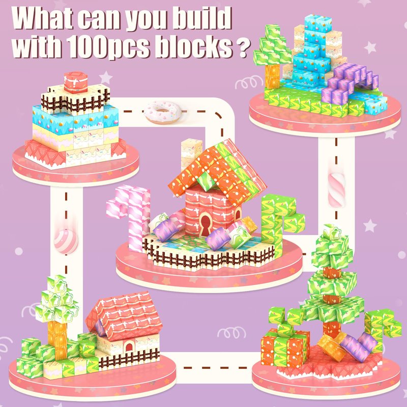 - Lovely Candy Magnetic Toys:Let's create our own candy area together! This candy magnetic toys is composed of 100 magnetic building blocks, including various types of candies. You can unleash your imagination and embark on a journey in the candy area