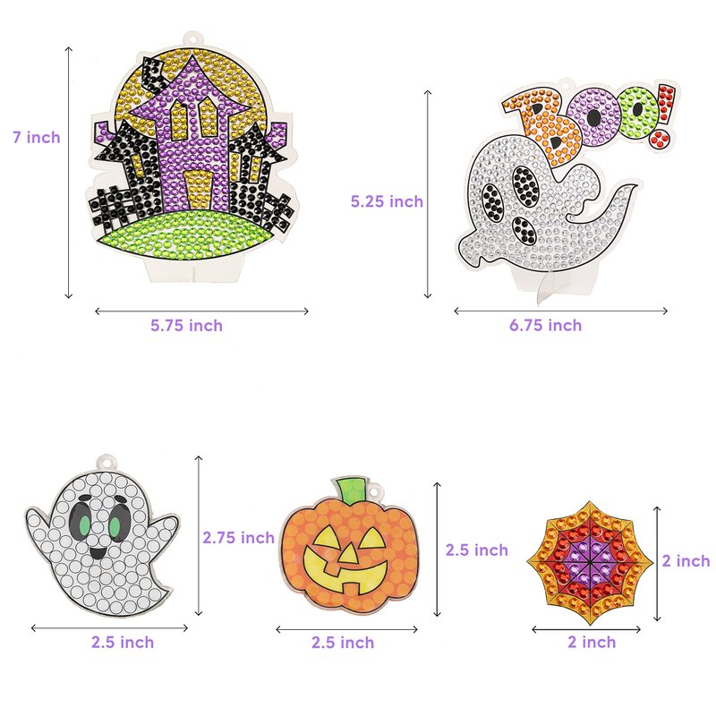 Klever Kits Halloween Gem Art Kit, Kids Halloween Art Crafts Party Supplies, Diamond Painting Kit with Stickers, Suncatchers, and Keychains, Party Favor DIY Activities School Game Goodies Gift