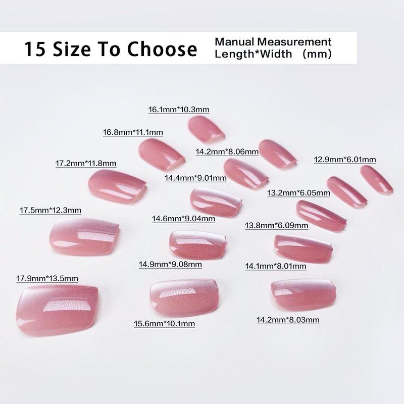- 2. Customizable Sizes: Our 30 PCS set offers 15 different sizes of short press on nails, ensuring a perfect fit for everyone. Say goodbye to the hassle of trimming or shaping nails – just select the size that fits best for a professional manicure result.