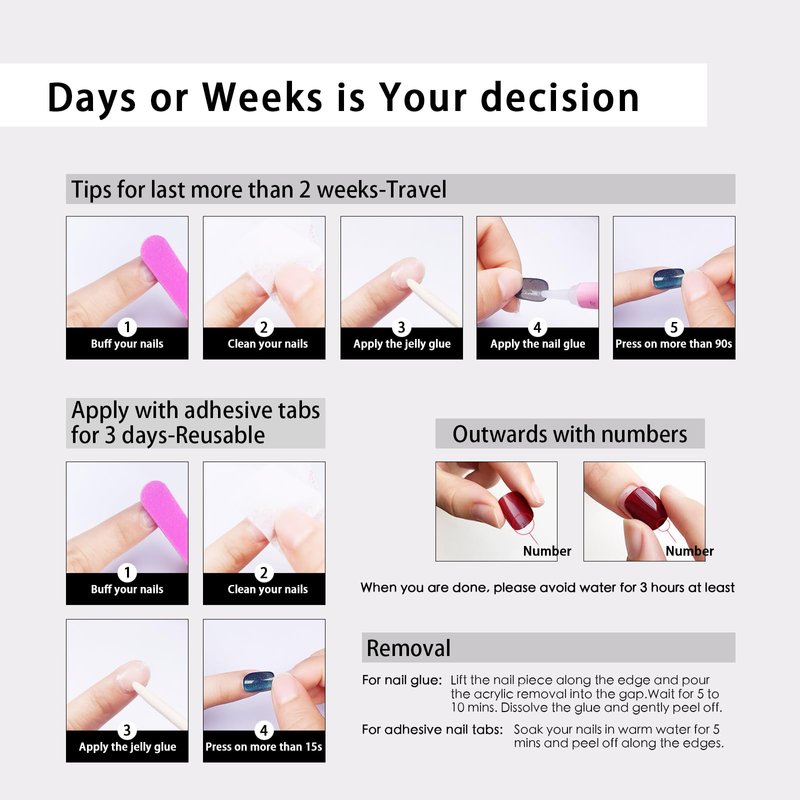 - 3. Long Lasting And Reusable: Enjoy durable salon-style nails that won't break or split. Our press-on nail sets are easily removable without damaging your natural nails, allowing for multiple uses and long-lasting wear.