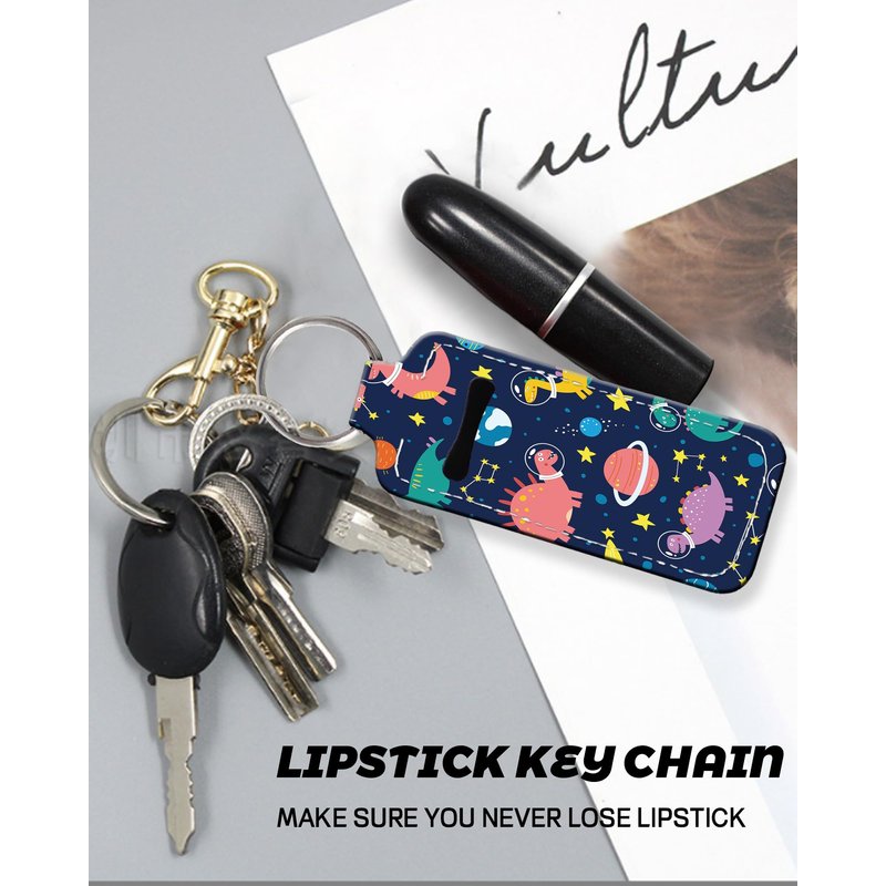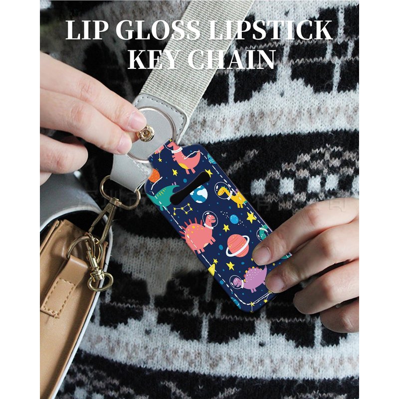 KLLRO RUO Chapstick Holder Keychain Fashion Lipstick Sleeve Lip Balm Portable Pocket Lip Gloss Tube Holder Clip-on Makeup Travel Accessories - Funny Space Dinosaur