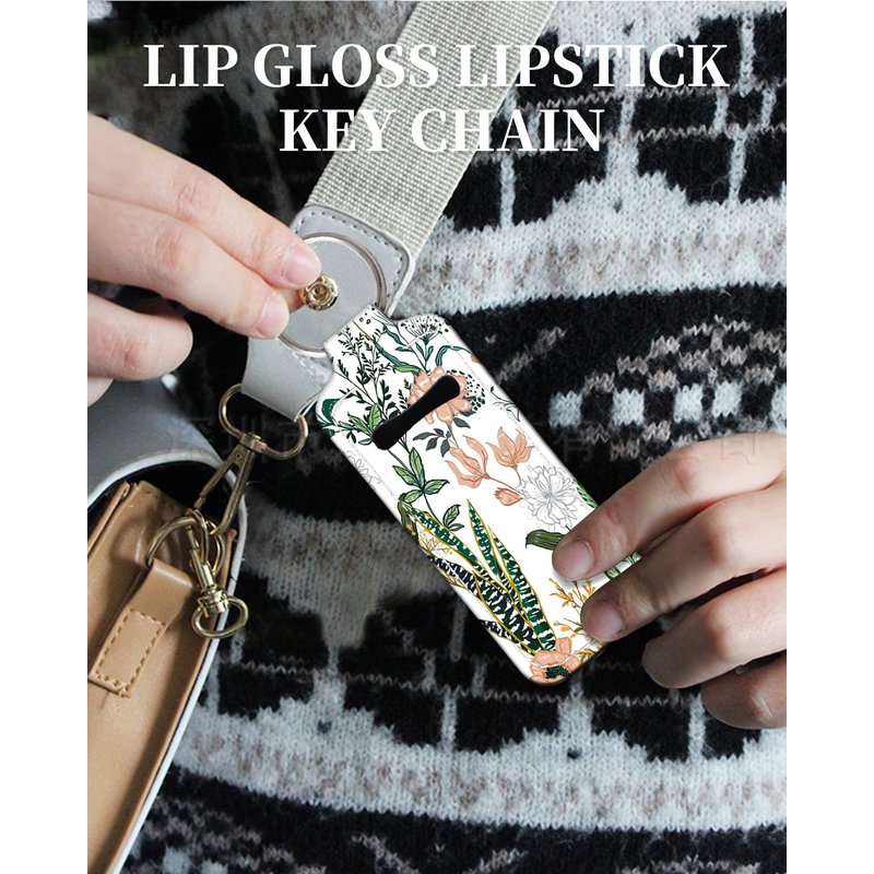 KLLRO RUO Chapstick Holder Keychain Fashion Lipstick Sleeve Lip Balm Portable Pocket Lip Gloss Tube Holder Clip-on Makeup Travel Accessories - Green Leaf Eucalyptus Floral