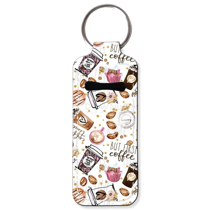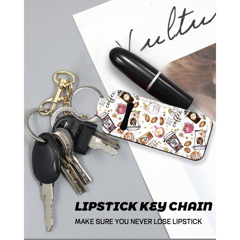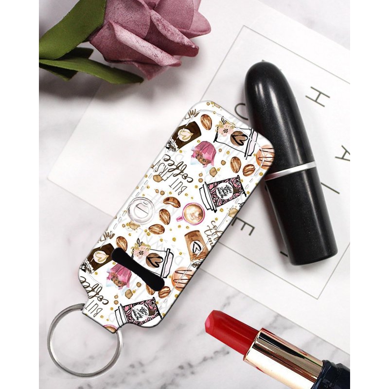 KLLRO RUO Chapstick Holder Keychain Fashion Lipstick Sleeve Lip Balm Portable Pocket Lip Gloss Tube Holder Clip-on Makeup Travel Accessories - I Love Coffee