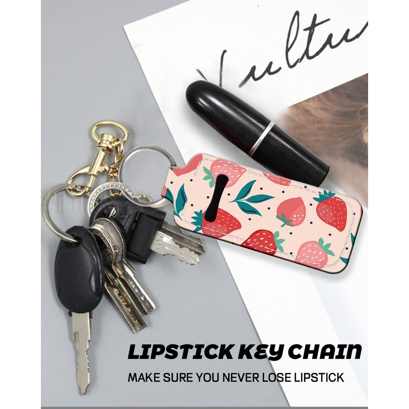 KLLRO RUO Chapstick Holder Keychain Fashion Lipstick Sleeve Lip Balm Portable Pocket Lip Gloss Tube Holder Clip-on Makeup Travel Accessories - Pink Strawberry