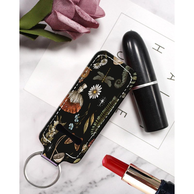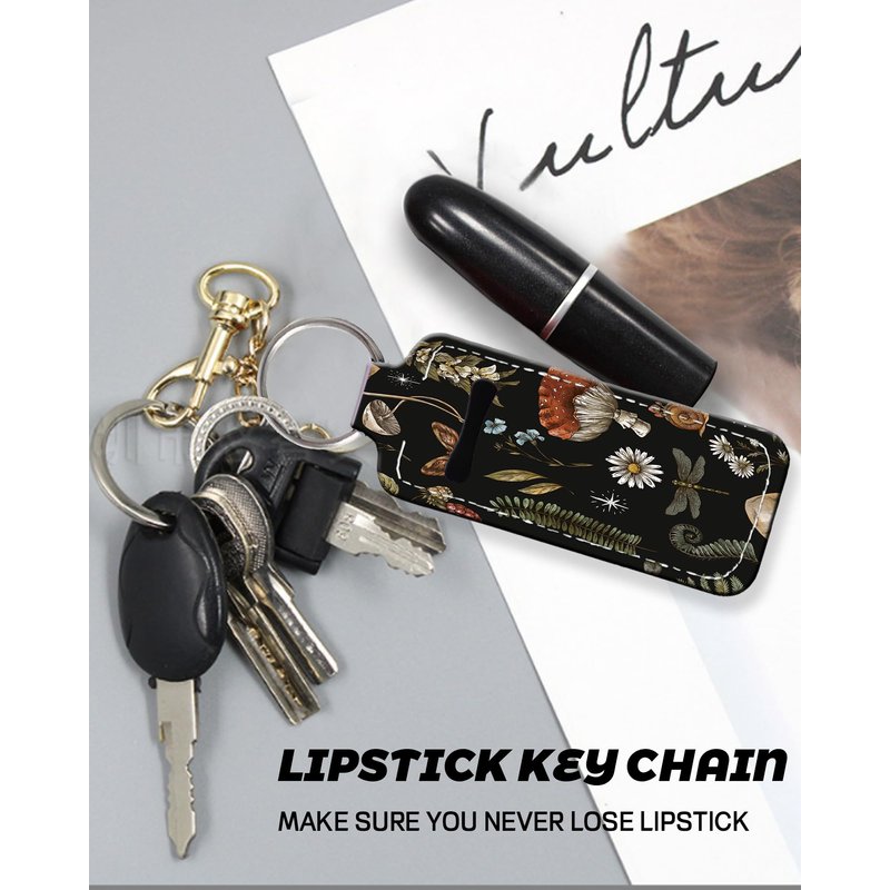 KLLRO RUO Chapstick Holder Keychain Fashion Lipstick Sleeve Lip Balm Portable Pocket Lip Gloss Tube Holder Clip-on Makeup Travel Accessories - Vintage Mushroom