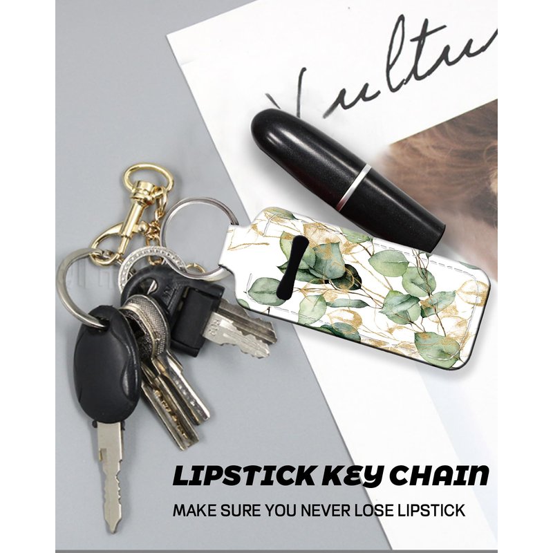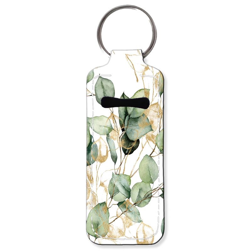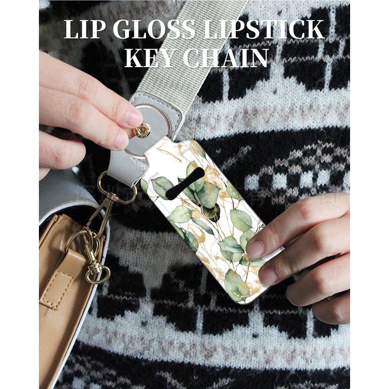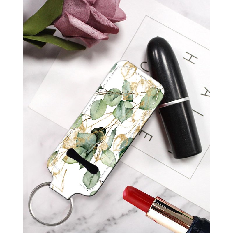 KLLRO RUO Chapstick Holder Keychain Fashion Lipstick Sleeve Lip Balm Portable Pocket Lip Gloss Tube Holder Clip-on Makeup Travel Accessories - Watercolor Green Floral Plant