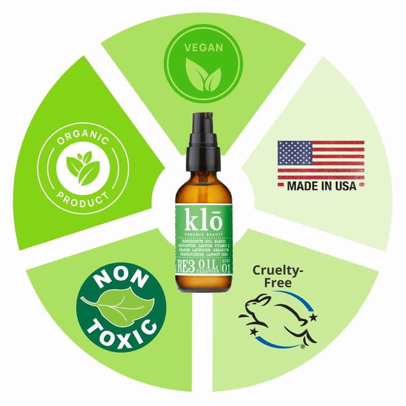 Klo Organic Beauty RE3 Oil Cleanser for Normal-Dry Skin, Anti-Aging Ingredients, Hydrated Glowing Skin, All-Natural, The Oil Cleansing Method, Vitamin E, Orange, Lavender Oil