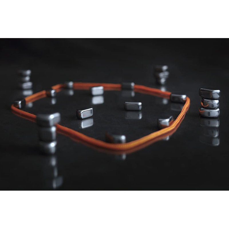 Kluster is a fun strategic tabletop game where players take turns getting rid of their magnets by placing them inside the circle of battle without letting the magnets connect, or ‘Kluster’. Get rid of all your magnets first and you’re the winner! This game is for 1-4 players and includes 24 polished hematite stones, a cord which once laid out in any configuration becomes the playing space, and a convenient carrying bag. Recommended for ages 14 and up. This product contains small magnets which can be hazardous.