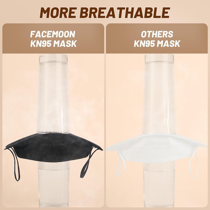 - STAY FRESH AND CLEAN ON-THE-GO: Each of FACEMOON KN95 masks is individually packaged to maintain cleanliness during transportation. Odorless and compact, they easily fit into your bag, ensuring you have reliable protection wherever you go.