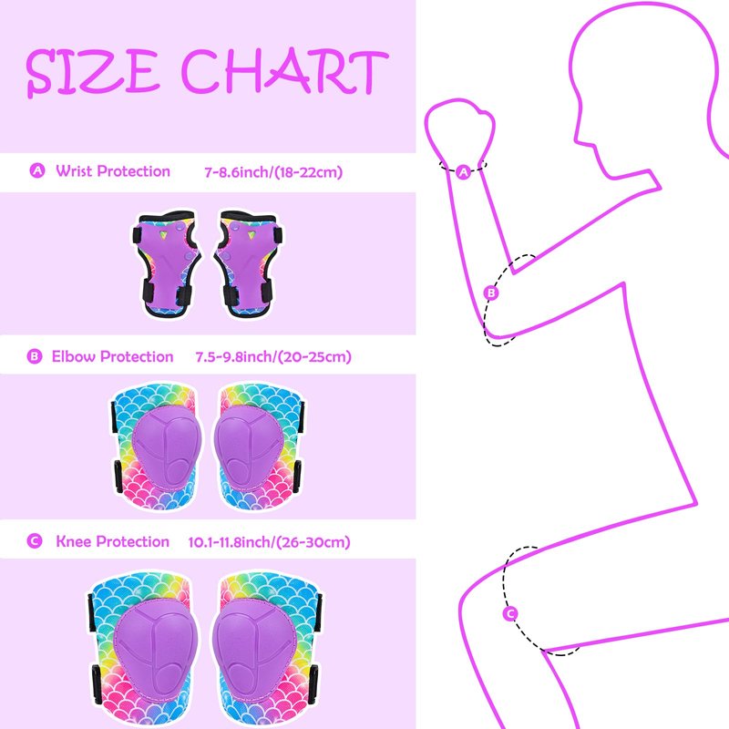 Knee Pads for Kids Adjustable Protective Gear Set with Mesh Bag Knee Pads and Elbow Pads Wrist Guard for Girls Kids Roller Skates Cycling Skateboard Scooter, 3-8 Years, Mermaid