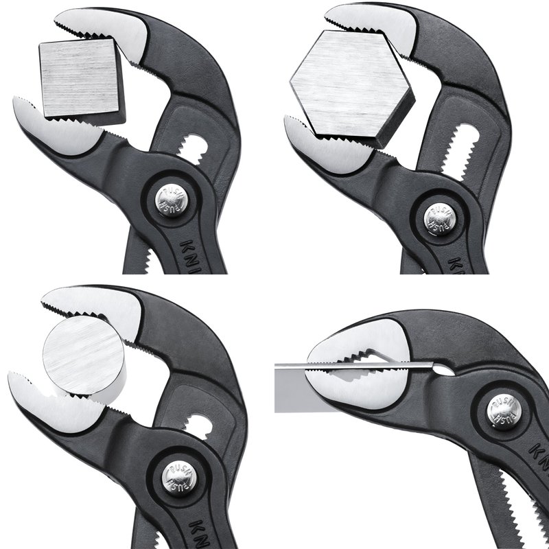 - Self-locking on pipes and nuts: no slipping on the workpiece and low handforce required.