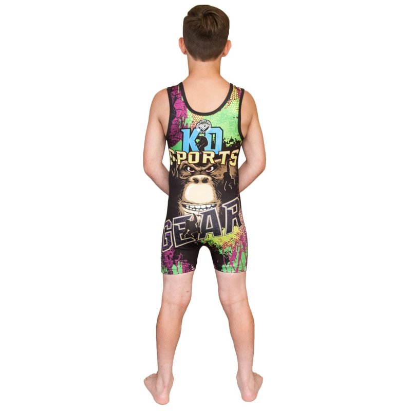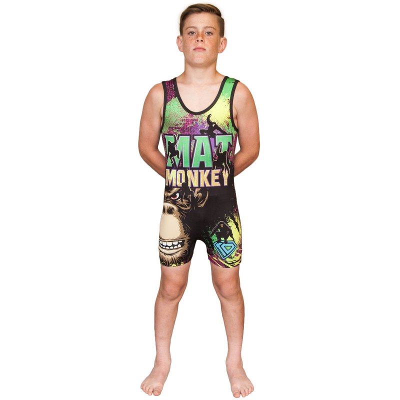 KO Sports Gear - Unisex Wrestling Singlet (Mat Monkey, Youth Medium)
