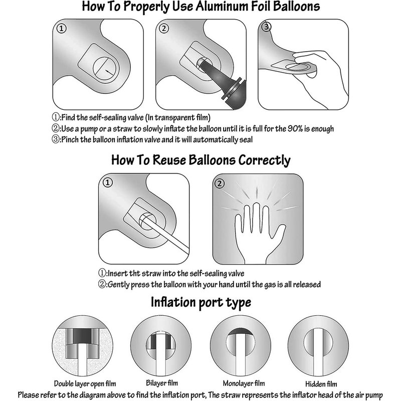- The koala balloon can be easily filled with air or helium. Thanks to a self-closing valve, the foil balloon can also be inflated by a drinking straw or hand pump. A filling of 80% to 92% is enough, please do not overfill the balloon so that it will not burst.