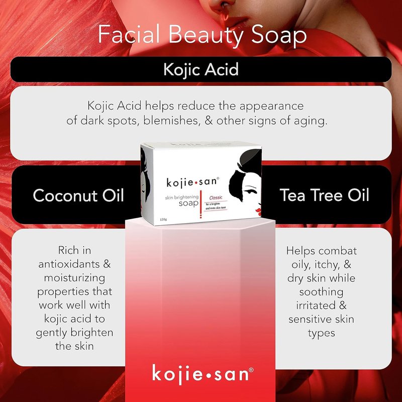 - Reveal your most radiant self: Experience real kojic acid soap that helps skin glow more and clearer; Kojie San soap reduces visibility of dark spots, freckles, stretch marks, and other skin tone problems