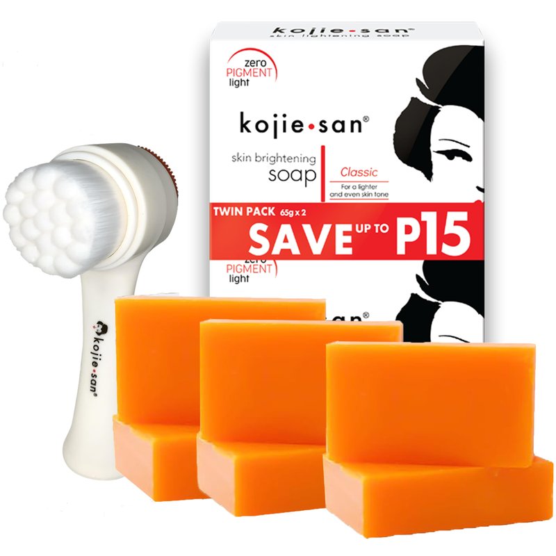 - Package includes: 6 Bars of 65g Kojie San Soap and 1 Relumins Deep Pore Facial Cleansing Brush