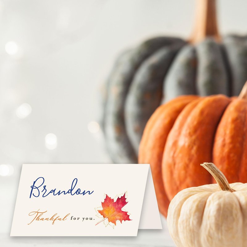 Koko Paper Co Maple Leaf Thankful for You Thanksgiving Table Place Cards | 50 Tent Style Dinner Setting Name Cards | Designed and Made in the U.S.A.