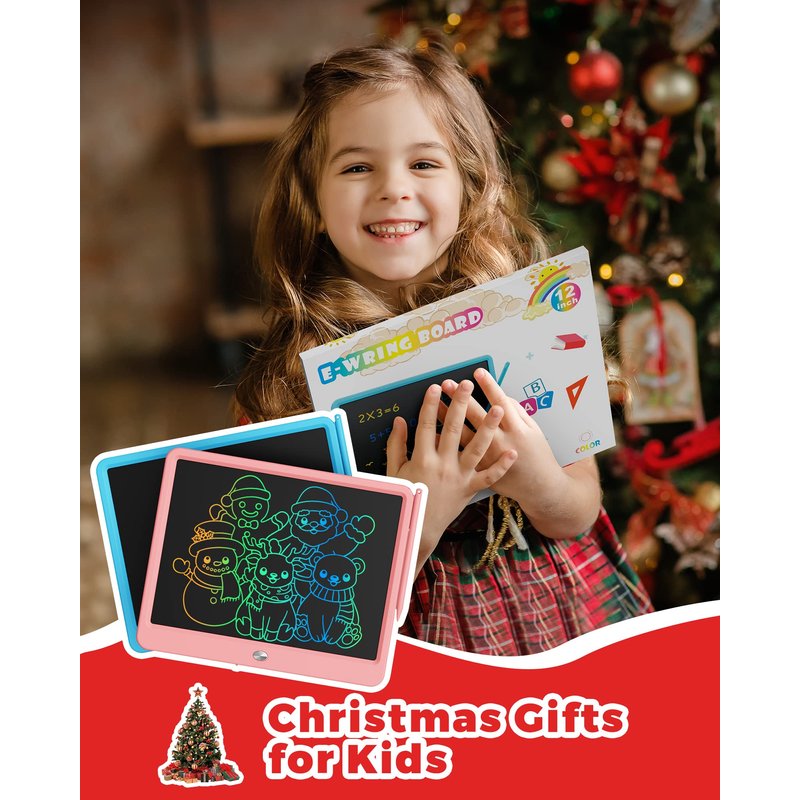 KOKODI 12 Inch LCD Writing Tablet with Anti-Lost Stylus, Erasable Doodle Board Colorful Toddler Drawing Pad, Car Travel School Games Toys for 3 4 5 6 7 8 Kids, Birthday Gift for Girls Boys Adults Pink