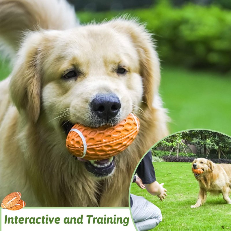 4. Fun & Exercise & Interactive: The football shape is ideal for tossing and playing fetch indoors or outdoors, enriching the dog's daily workout to keep them active and healthy. The squeak makes the playtime even more exciting.