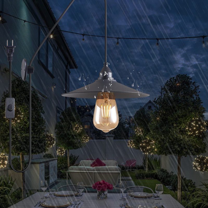 - ☑[Multifunctional outdoor waterproof hanging light]:This [waterproof pendant light with plug] meets SJTW standard - round hard service cord. Thermoplastic structure. 110V-240V universal, weatherproof, suitable for outdoor use. PVC socket creates a tight weatherproof seal around the bulb. IP65 waterproof rating to withstand rain, snow, etc. No matter what the weather, this powerful string light is ready for anything.