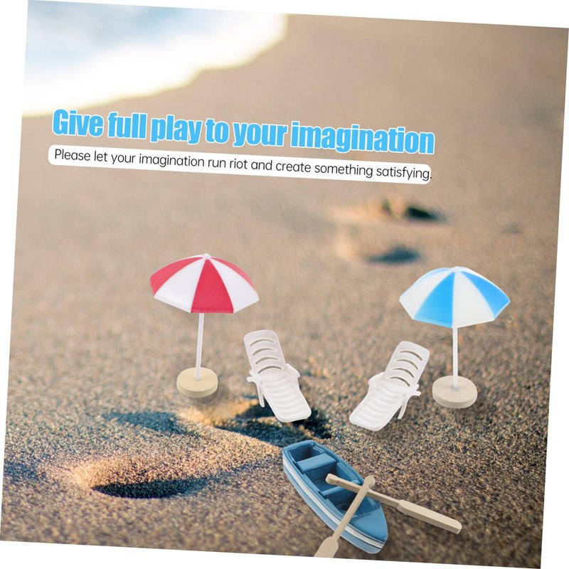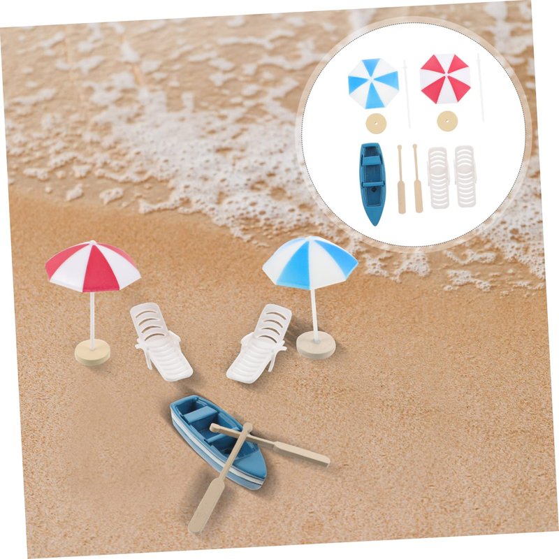 2 x mini beach umbrella 2 x mini beach chair 1 x mini boat 2 x mini pulp