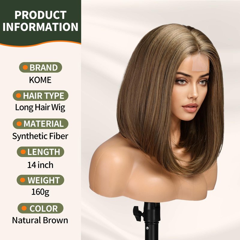 KOME Natural Brown Short Bob Wigs,Brown Straight Shoulder Length Wigs for Women,Middle Part Heat Resistant Fibre Synthetic Wig Daily Use…