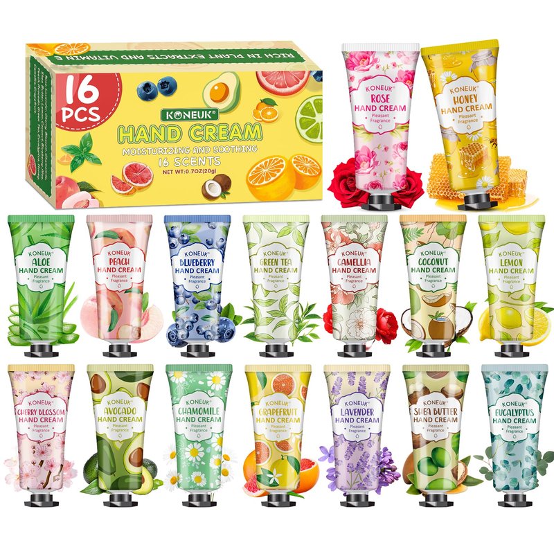 KONEUK 16 Pack Hand Cream Gifts Set For Women, Bulk Hand Lotion Travel Size for Dry Cracked Hands, Mini Hand Cream for Baby Shower Party Favors, Bridal Shower Gifts and Gifts for Women
