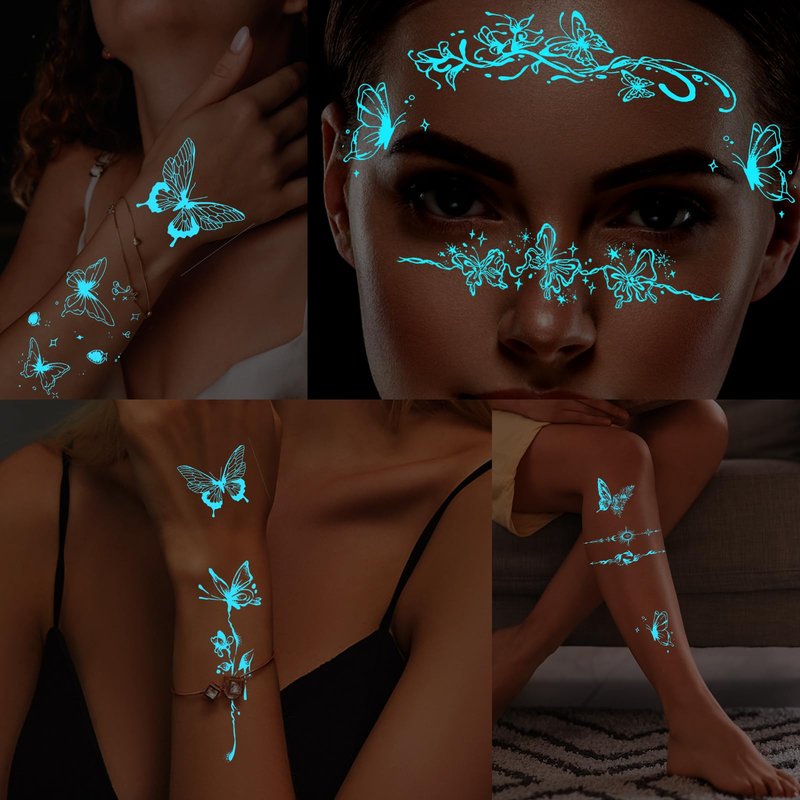 • Luminous Effect Activation : To ensure the best glow in the dark effect, place the butterfly tattoo sticker under a strong light for 30 seconds to 1 minute before use to activate its luminous properties. It is recommended to use a cell phone flashlight or other strong light source for irradiation