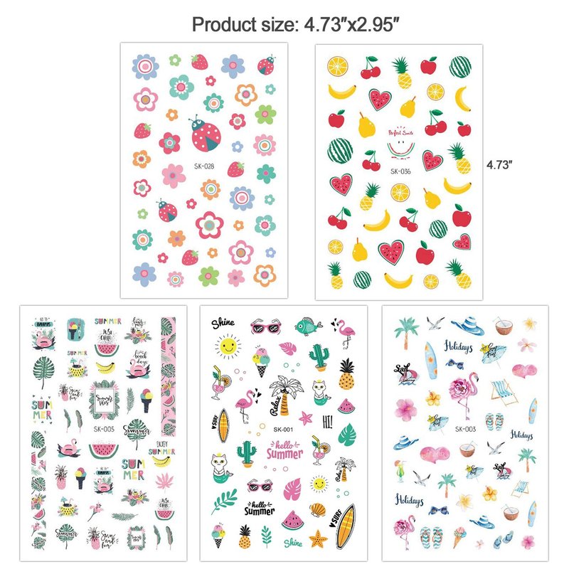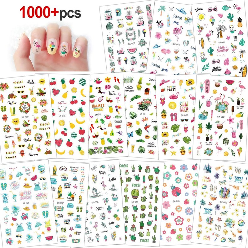 - 1000+pcs Nail Decoration - Our summer nail art stickers have different and classic patterns such as flamingo, cactus, fruit, ocean, turtle leaf, palm leaf, pineapple, watermelon, flower, heart flowers ,green plant and so on, which can offer you multiple choices, satisfy your rich imagination of nail DIY and create your own summer style.