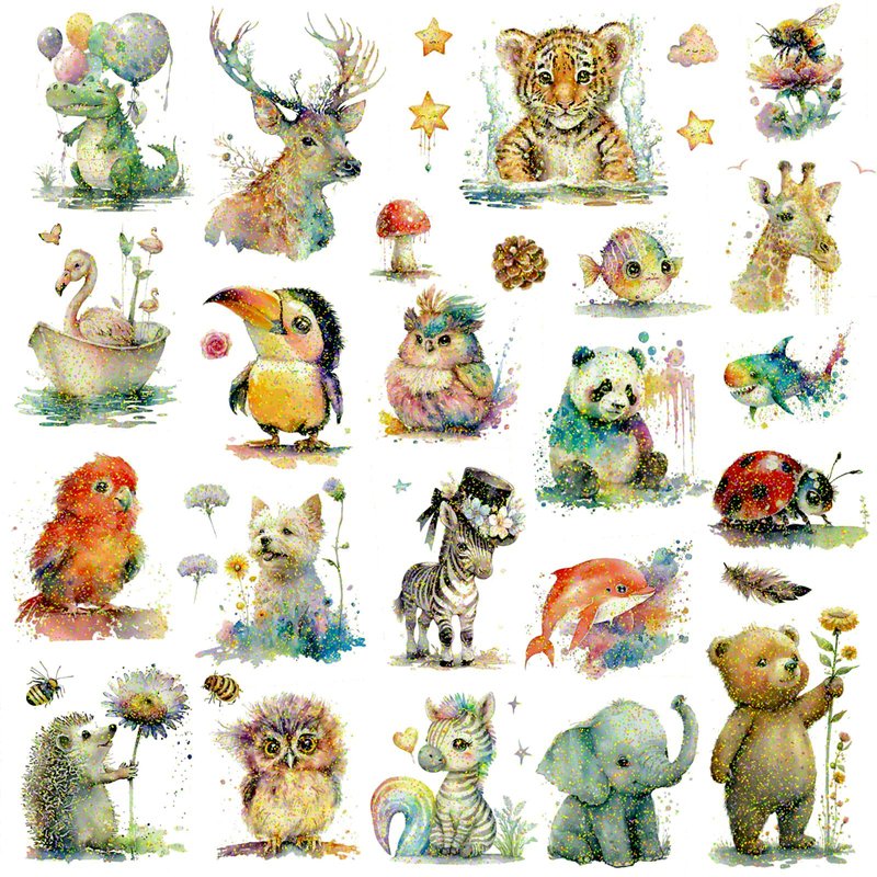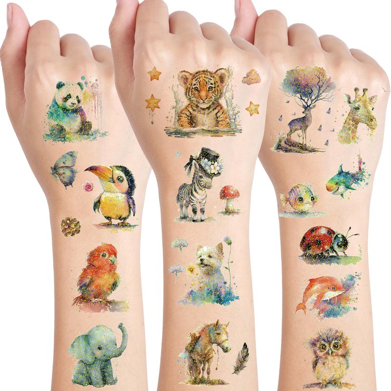 - Animal Tattoos: These animal party favors tattoos are delicately designed with intricate details and watercolor style super cute animal patterns, here you can find more than 26 animal species like whale, flamingo, rabbit, bear and more, suitable for both kids and adult. Shining with glitter design, artistic and super colorful, great for all ages