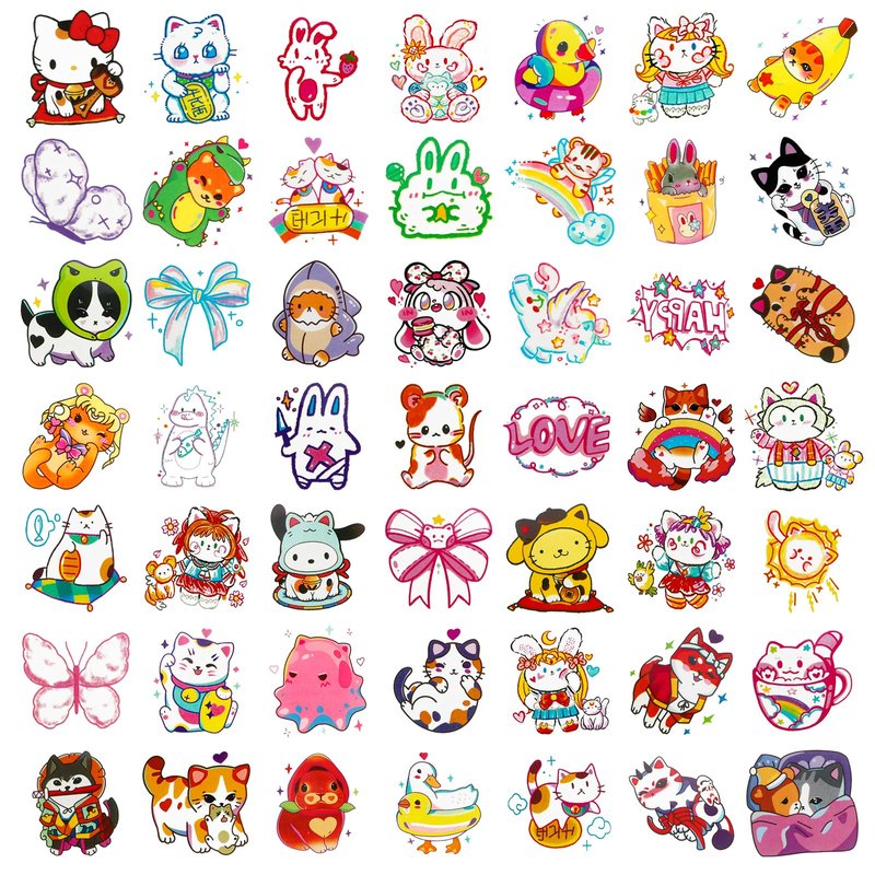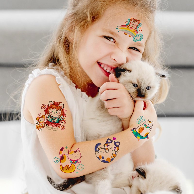 - Anime Temporary Tattoo: This anime temporary tattoos set includes 49 different cute cartton cat and other designs, for a total of 50 sheets anime tattoos. Individually wrapped, these cat tattoos are easy to apply, perfect for any anime theme parties, cat parties, birthday parties and more, perfect for gift bags and gift fillers.