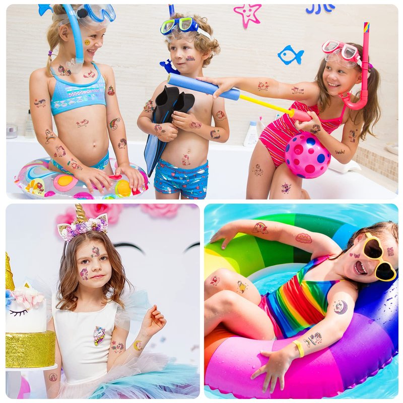 - 【Safe And Not Easy To Fade】 Made of safe materials, our waterproof tattoos are safe for children’s bodies, this goodie bag stuffers are gentle so you can use them without worries. Super cute and colorful tattoo designs. These colorful stickers are waterproof. They will not easily fade and can keep their bright color for 3-5 days. You can rest assured that the stickers are appropriate for kids and girls.