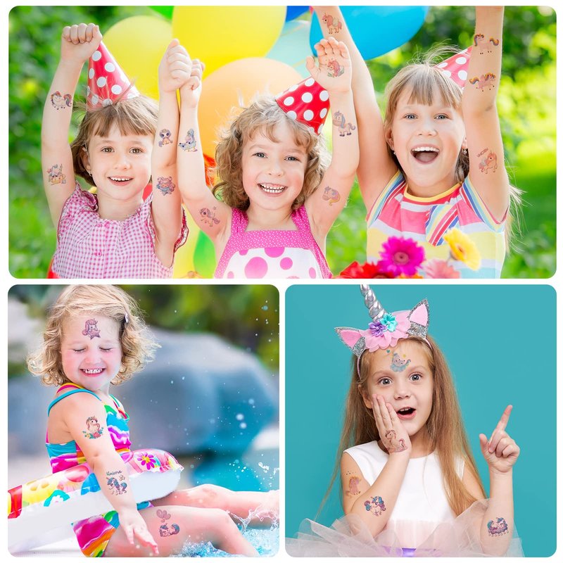 - 【Girls Party Favors】 The colors come out looking very vibrant and the tattoos look very detailed and clear on the skin. Temporary tattoos are an ideal choice for kids' party supplies, kids' birthdays, party favors, birthday party decorations, party games, and more events.