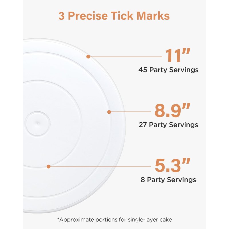 - 360° Spinning Cake Turntable: The cake turntable has an 11-inch diameter and 3-inch height and spins smoothly on a hidden ball bearing, making it easy to achieve stunningly consistent patterns and gorgeous designs. With 360º clockwise and counterclockwise spinning, you can decorate cakes like the pros.