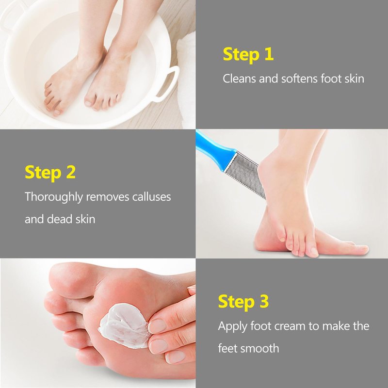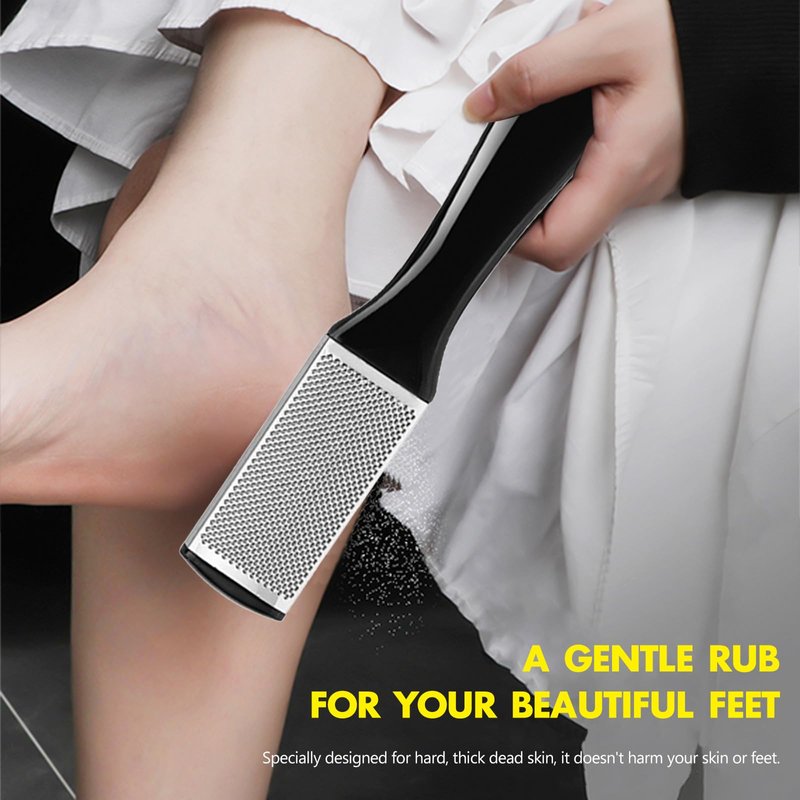 - Featuring a dual-sided design, our foot files are equipped with a stainless steel mesh front, making it a breeze to scrape off dead skin. Flip it over and use the sandpaper surface to polish away residual dead skin on your soles, leaving them feeling smooth.