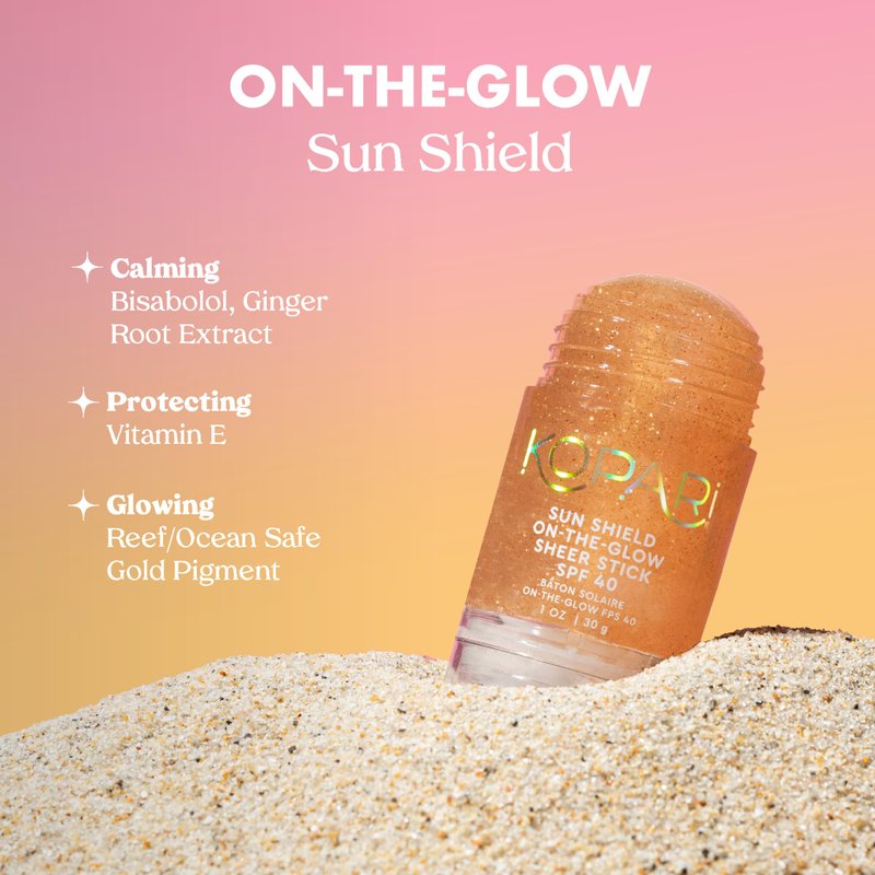Kopari Sun Shield On-The-Glow Sheer Sunscreen Stick SPF 40, Sweat and Water Resistant Roll On Sunscreen For Face and Body with Vitamin E and Bisobolol, 1oz
