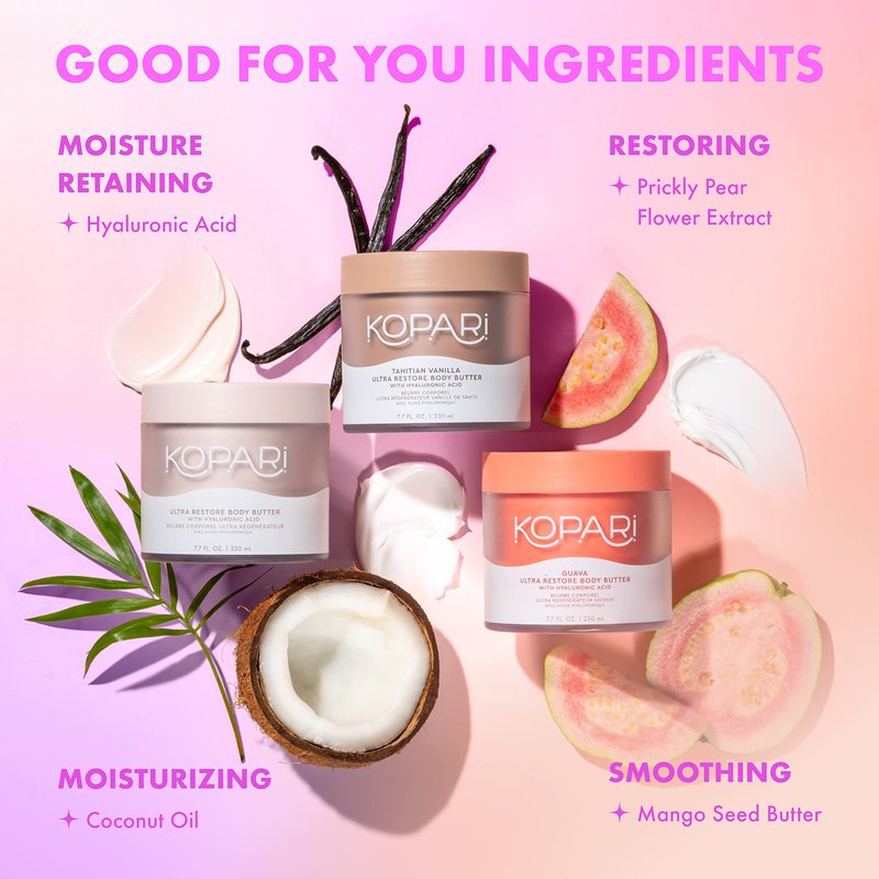 Kopari Tahitian Vanilla Ultra Body Butter | Hyaluronic Acid, Antioxidants, Omegas, and Fatty Acids to Hydrate and Retain Moisture | Sweet Tahitian Vanilla Scent | Vegan and Cruelty Free | 7.7 Oz