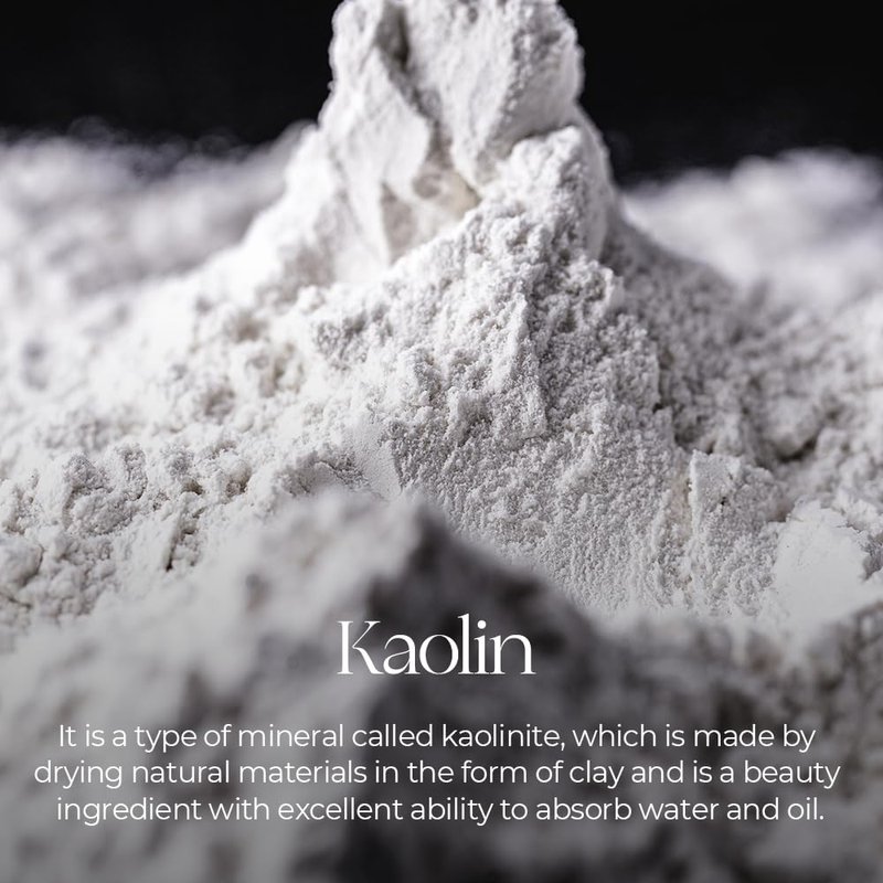 - [Kaolin] A gentle clay mineral, effectively absorbs excess oil and impurities without stripping the skin's natural moisture. This helps to unclog pores, reduce shine, and gently exfoliate dead skin cells for a smoother, brighter complexion. It's suitable even for sensitive skin types.