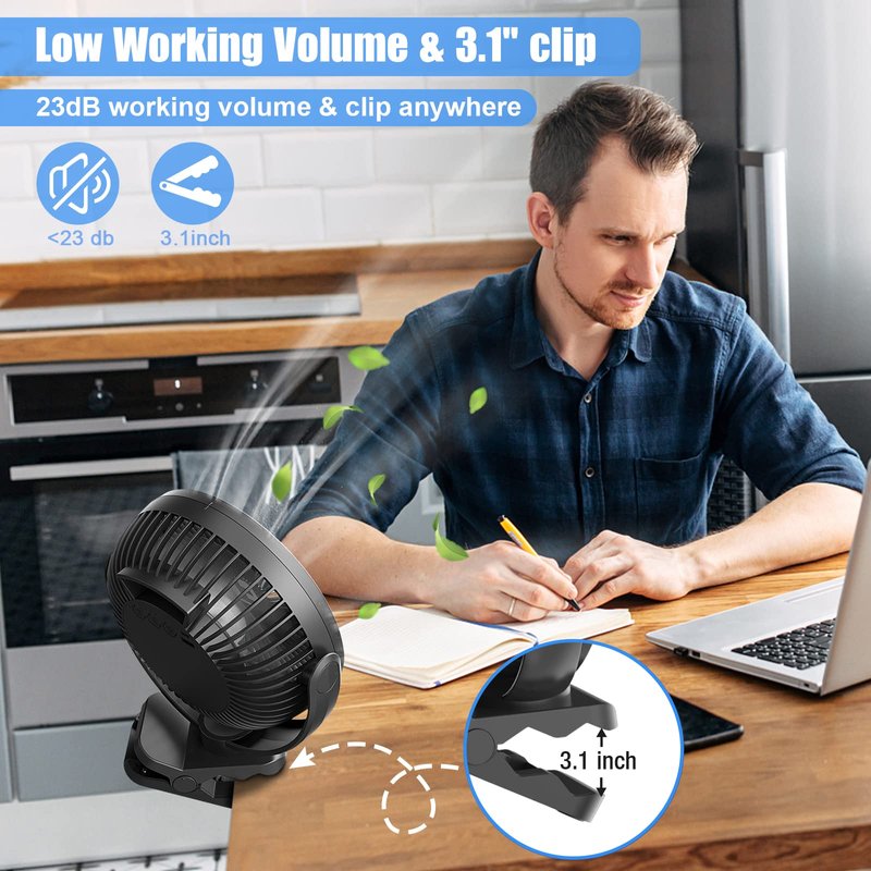- 3.Quiet Operation: With a working volume of less than 23 decibels, this fan operates quietly, making it perfect for use in a bedroom, library, or office. Its low noise output ensures that it won't distract you or your coworkers, making it perfect for use as a USB fan or clip-on fan.