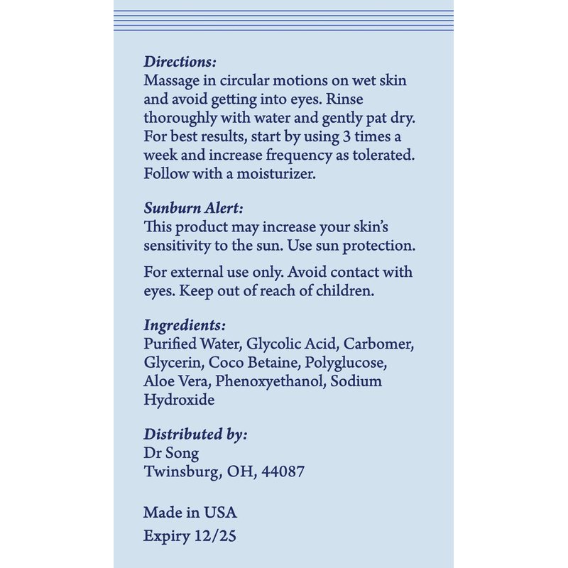 - Soft, Soothing, Non-Drying Formula – Dr Song glycolic acid exfoliating cleanser is safe on dry, oily, sensitive, irritated, and combination skin and leaves skin feeling softer, suppler, and firmer to the touch for youthful balance.